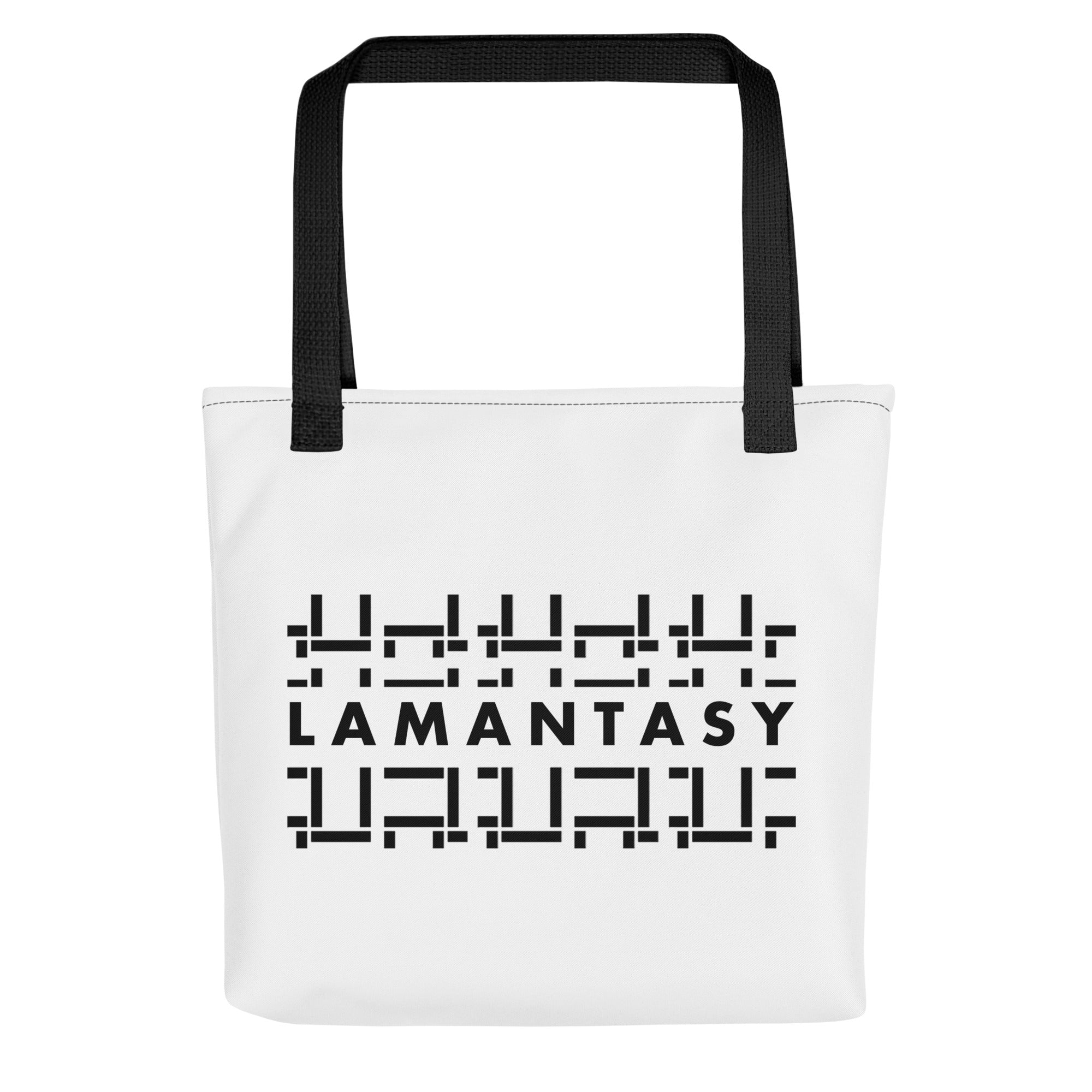 LAMANTASY Black and White Tote Bag. This small tote bag is your next stylish accessory. Featuring our original design.
