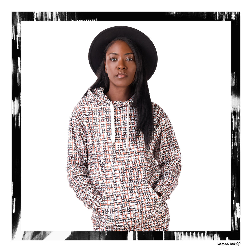 L LAMANTASY Burnt Orange, Black and White Hoodie. This printed hoodie is stylish, comfortable and versatile with a relaxed fit. Featuring our original elevated design.