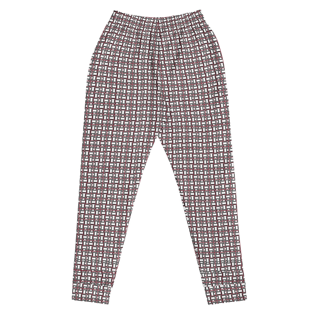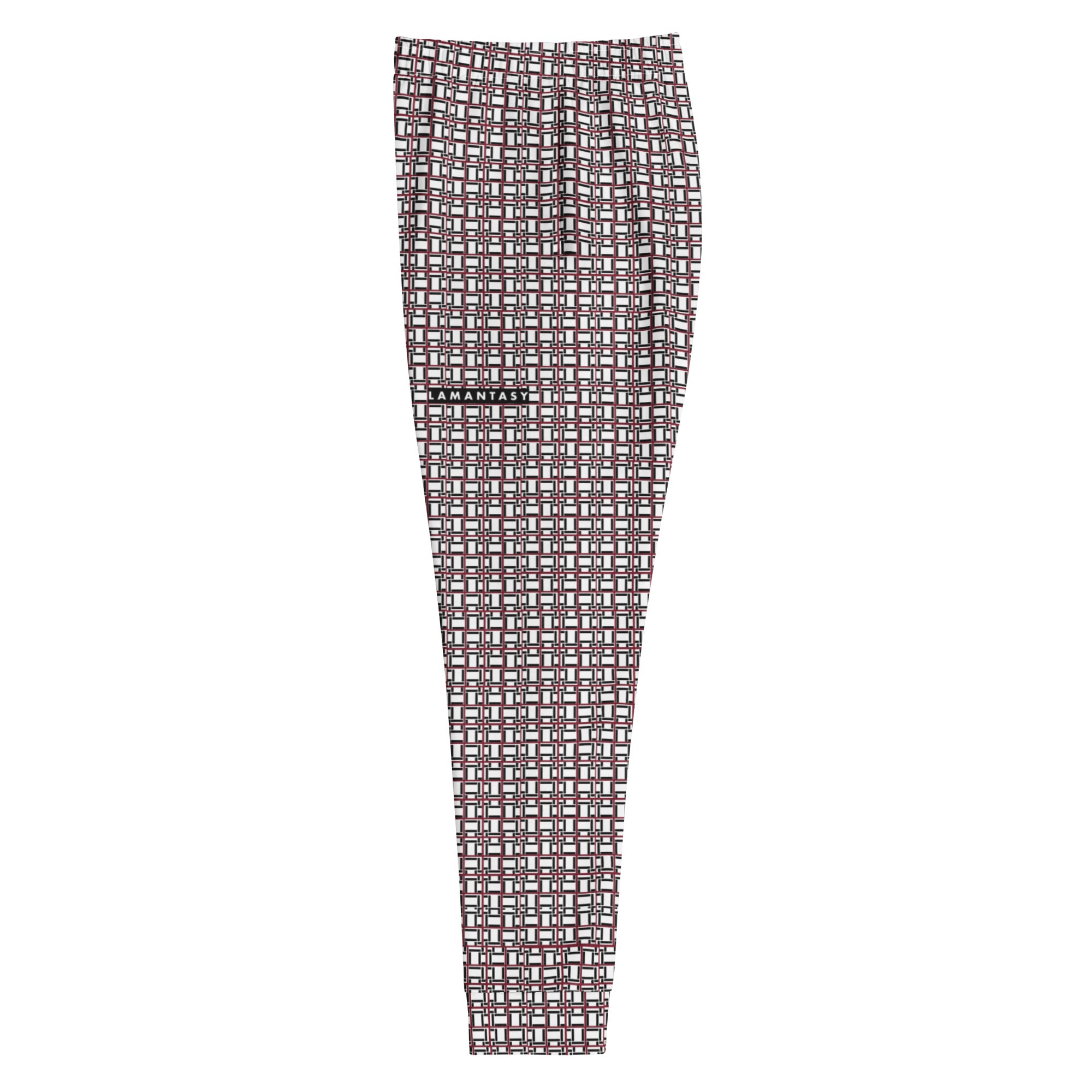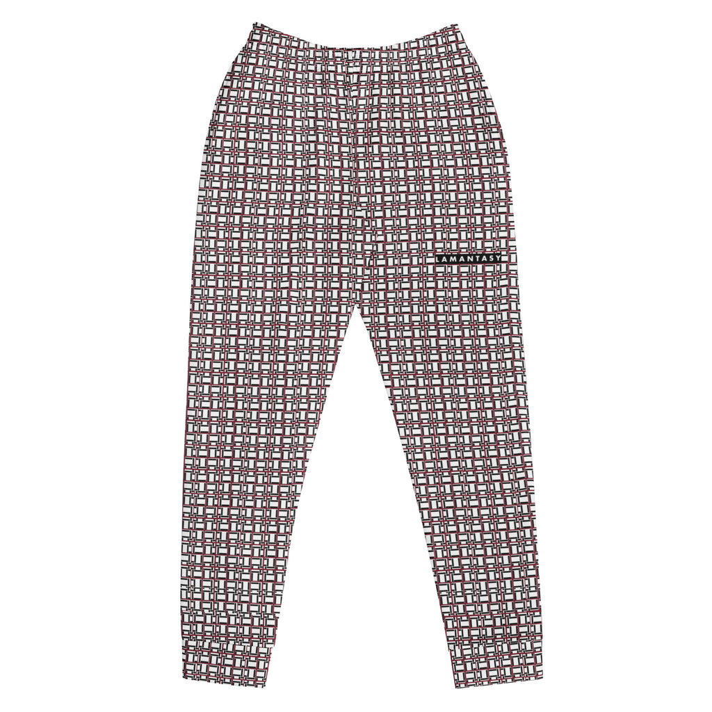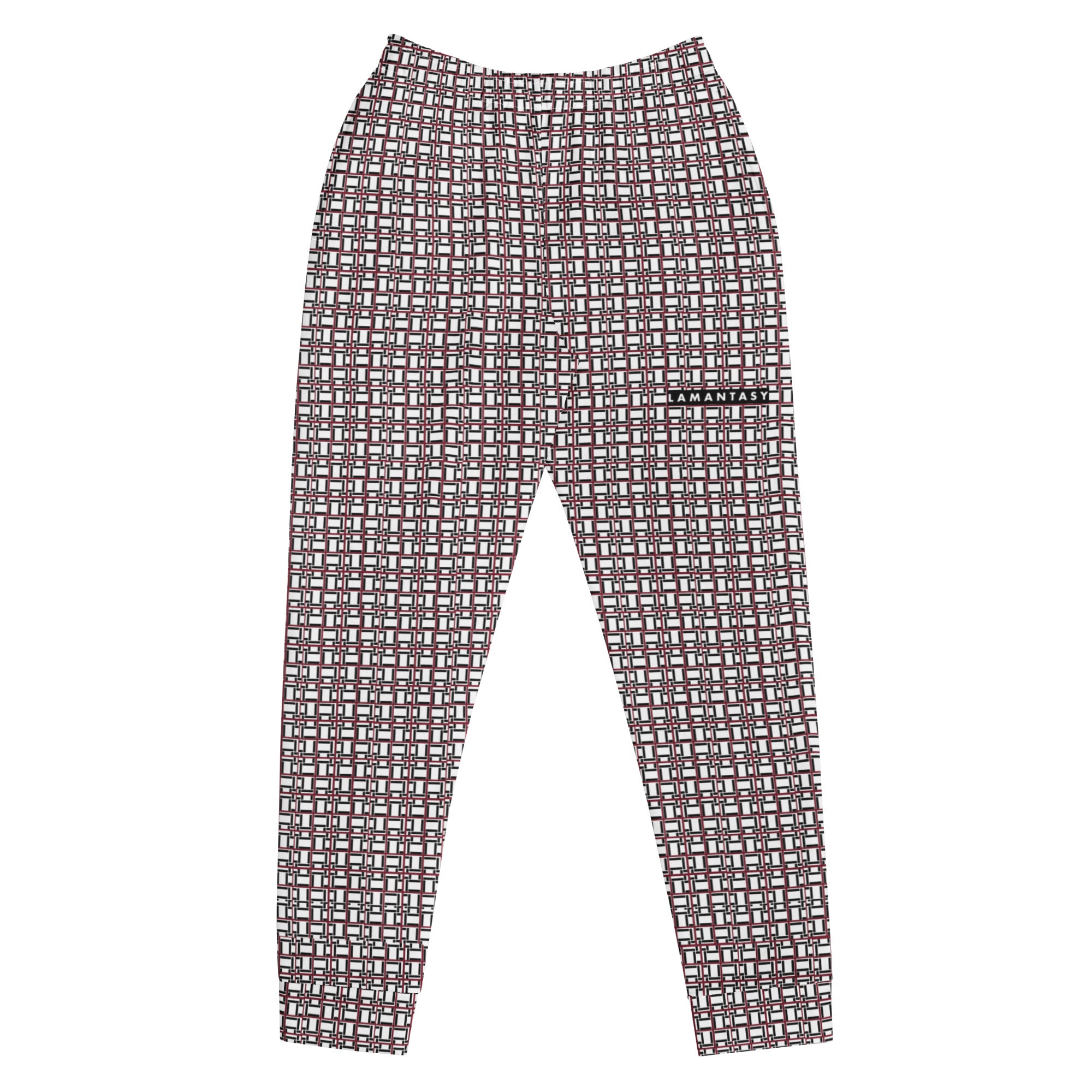 L LAMANTASY Burgundy, Black and White Joggers. These printed joggers are stylish, comfortable and versatile. Plus, they are slim fit with two side pockets. Featuring our original elevated design.