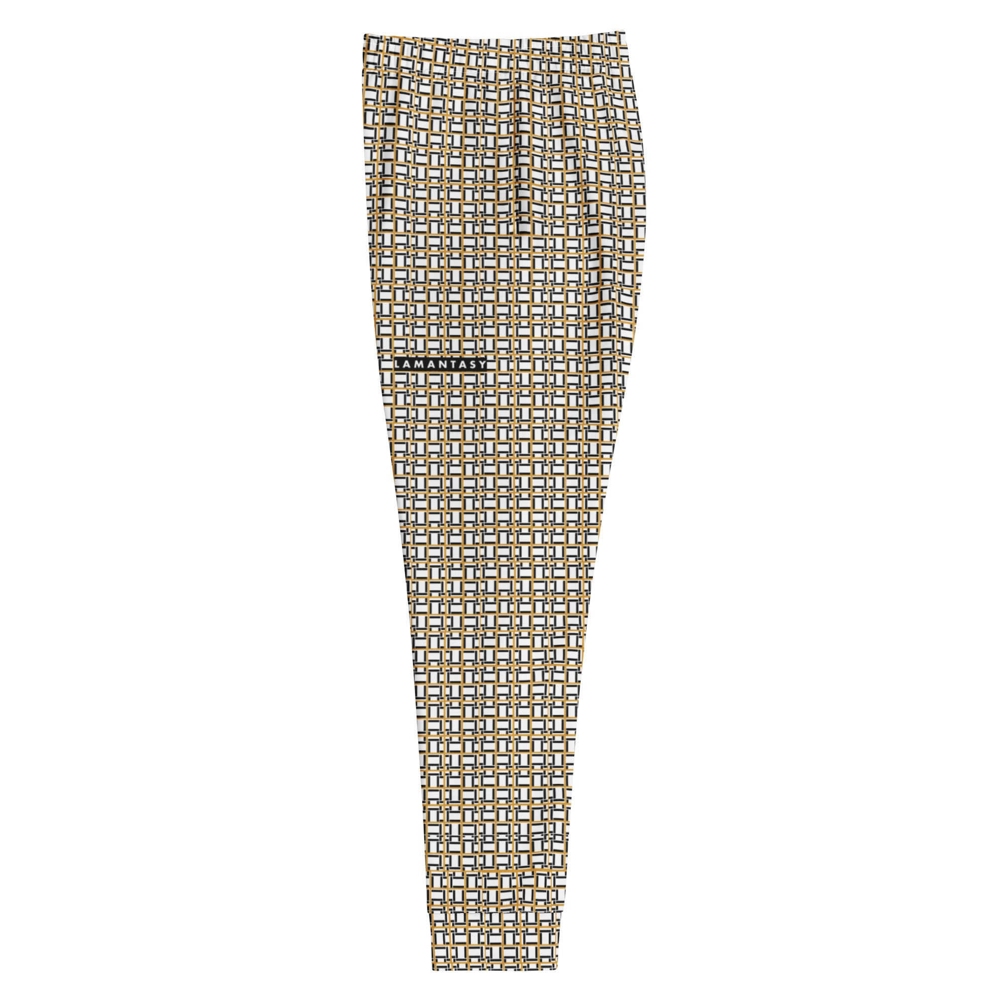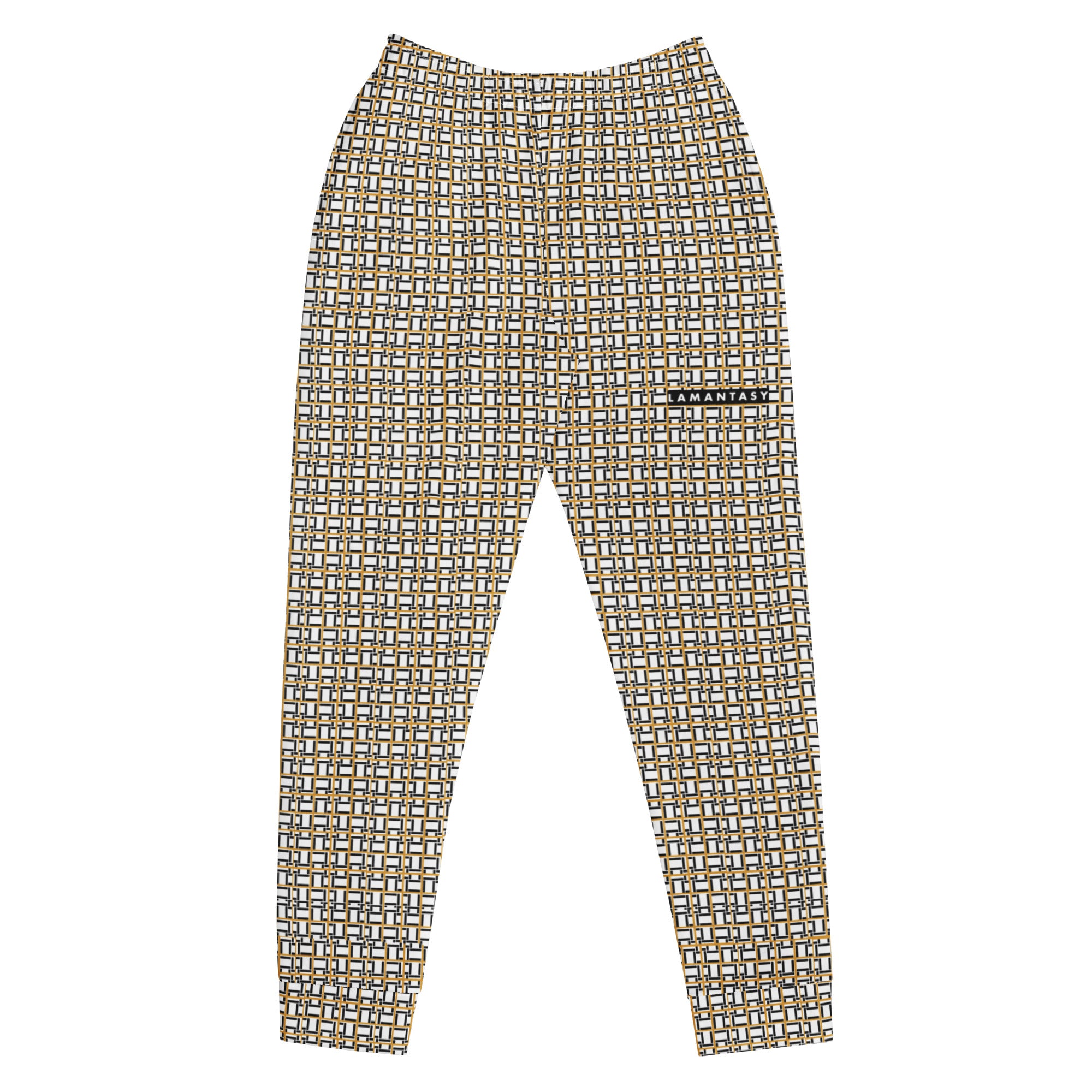 L LAMANTASY Mustard, Black and White Joggers. These printed joggers are stylish, comfortable and versatile. Plus, they are slim fit with two side pockets. Featuring our original elevated design.